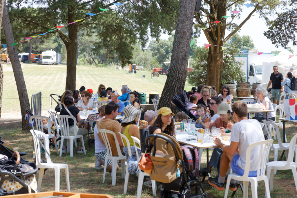 Des coins sont aménagés pour vous reposer dans l’herbe à l’ombre des arbres.