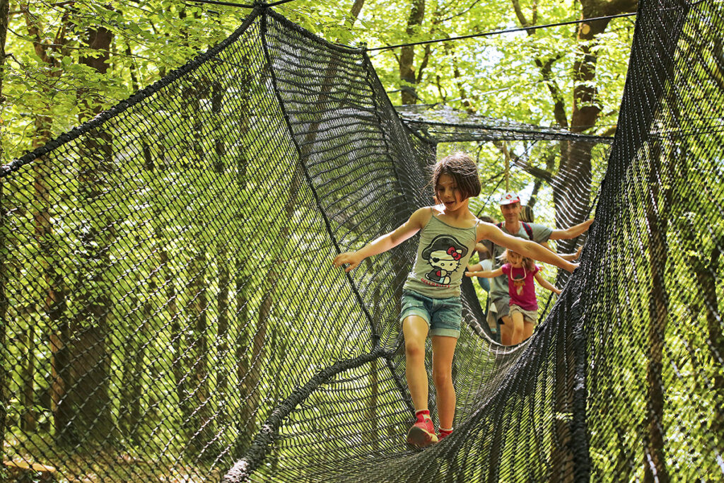 Un parcours aérien d’arbre en arbre, entre équilibre et agilité.